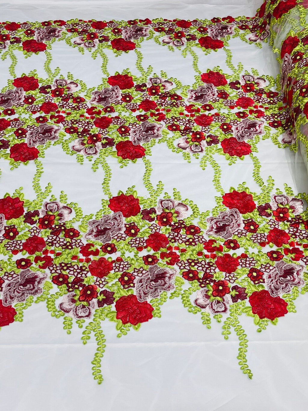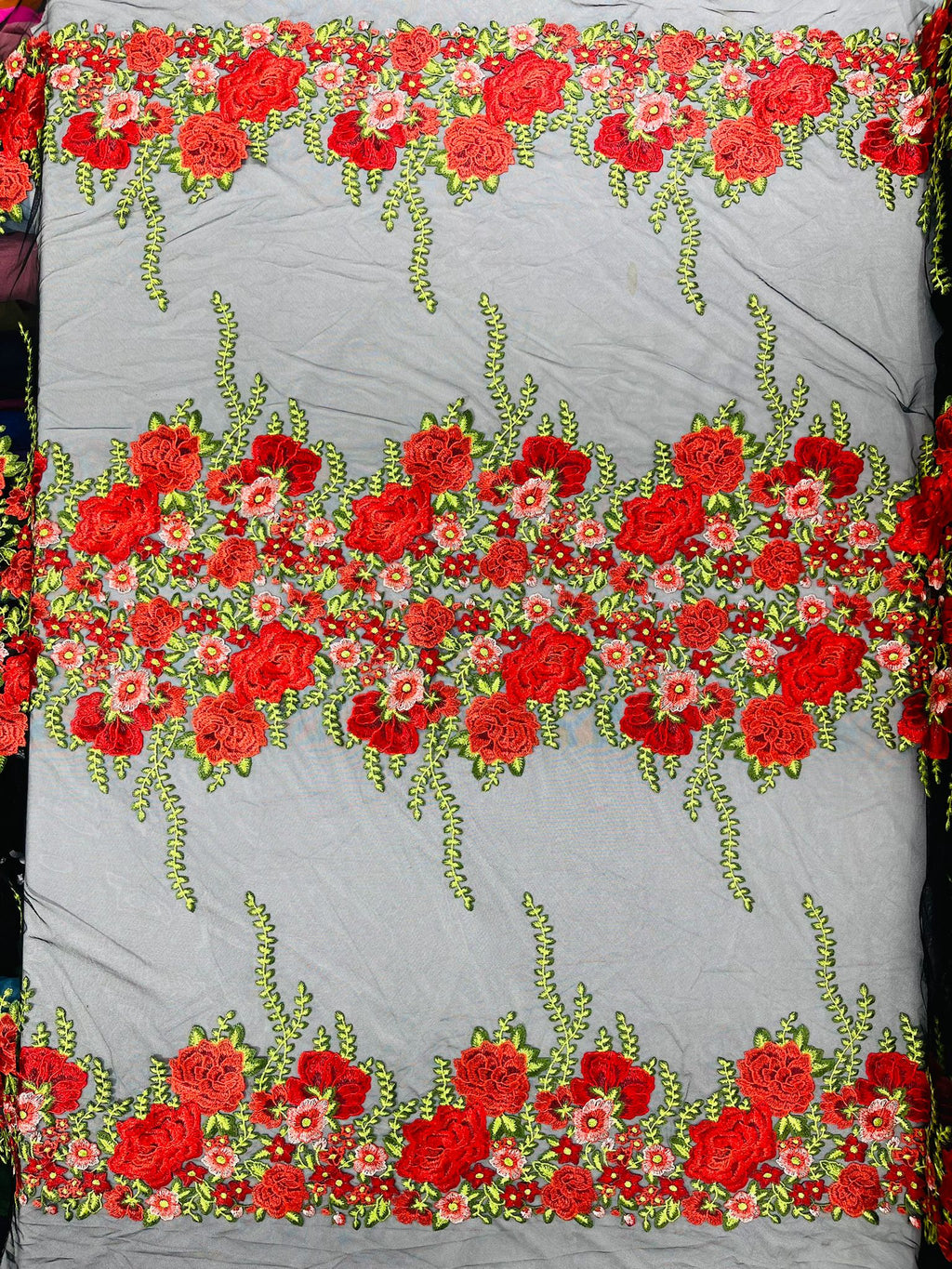 Roses Multi Color Floral Design Embroider On Mesh Lace Fabric| New Creations Fabric & Foam Inc.