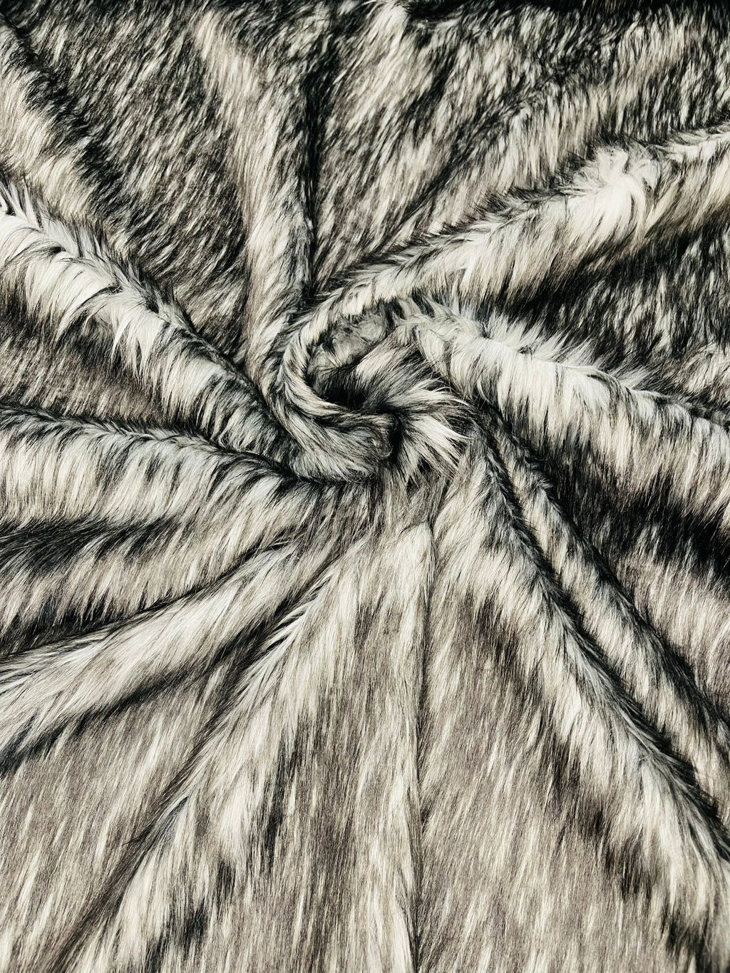 This Husky faux fur it feels real to the touch and it's real soft to the touch. This husky faux fur is a jacquard faux fur. The faux fur has approximately a 2 inch high pile. This faux fur can be use for blankets, pillows, jackets, decoration, upholstery, rugs, throw blankets, stuff animals, toys costumes, mascots and much more.....