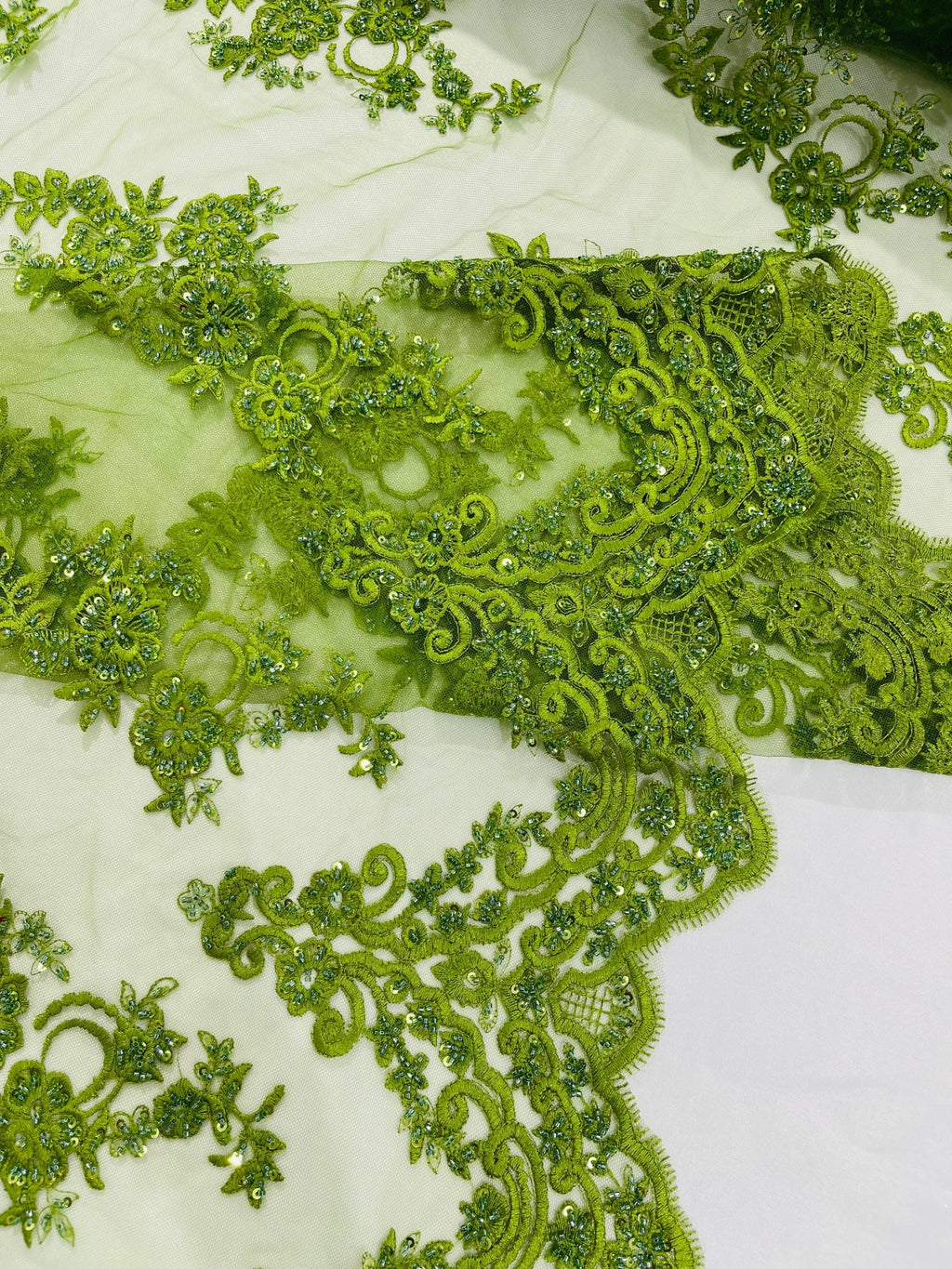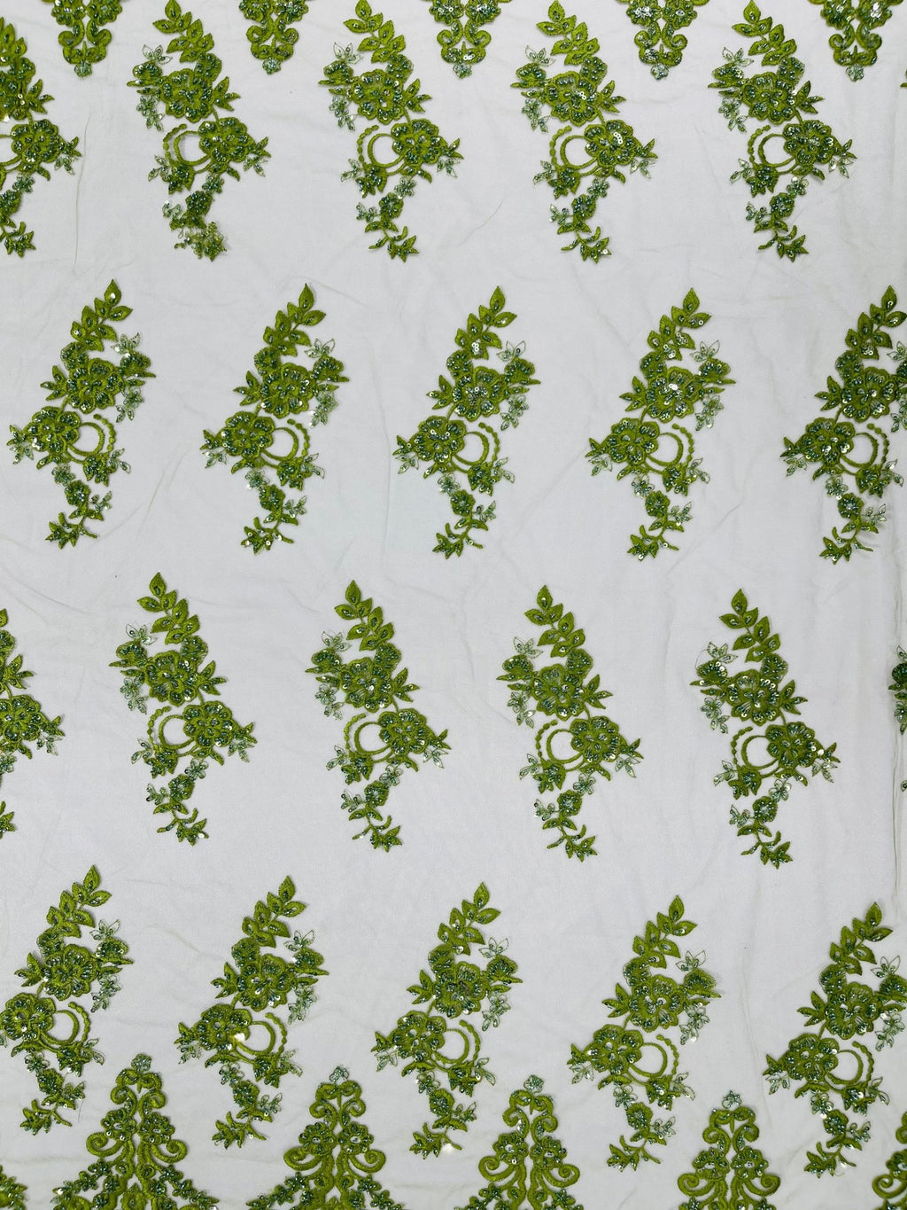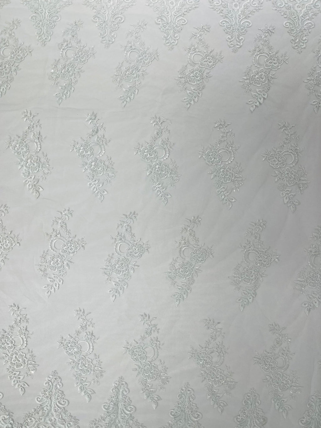 Elegant Beaded Floral Lace on Mesh 54" Wide | New Creation Fabric & Foam Inc.
