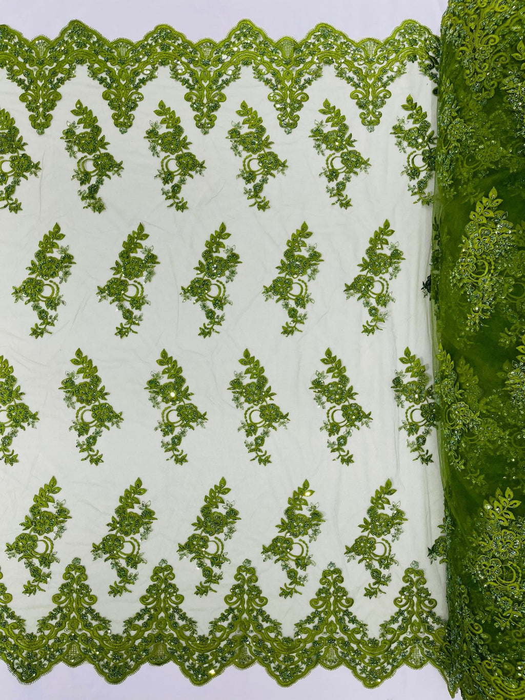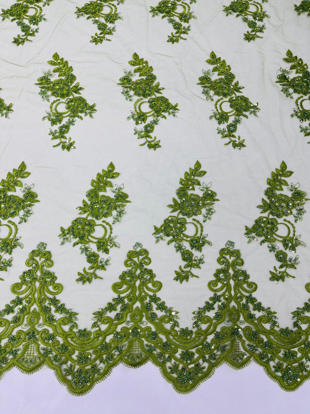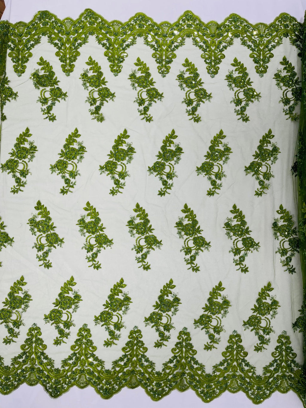 Elegant Beaded Floral Lace on Mesh 54" Wide | New Creation Fabric & Foam Inc.