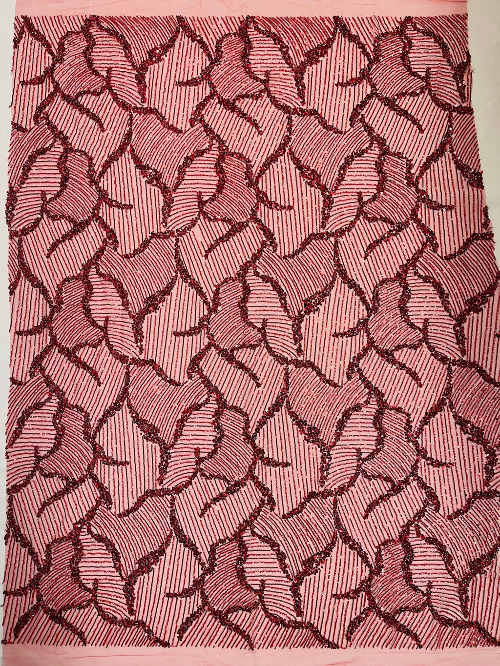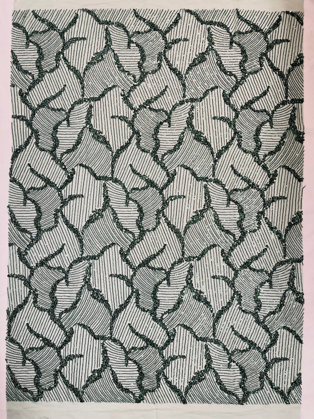 Heavy Beaded Leaf Design on a mesh 54" Wide| New Creation Fabric & Foam Inc.