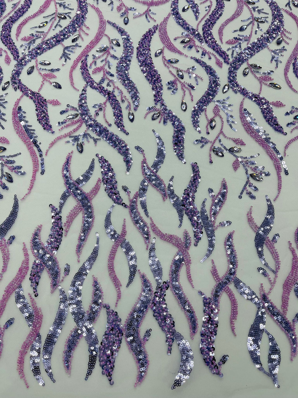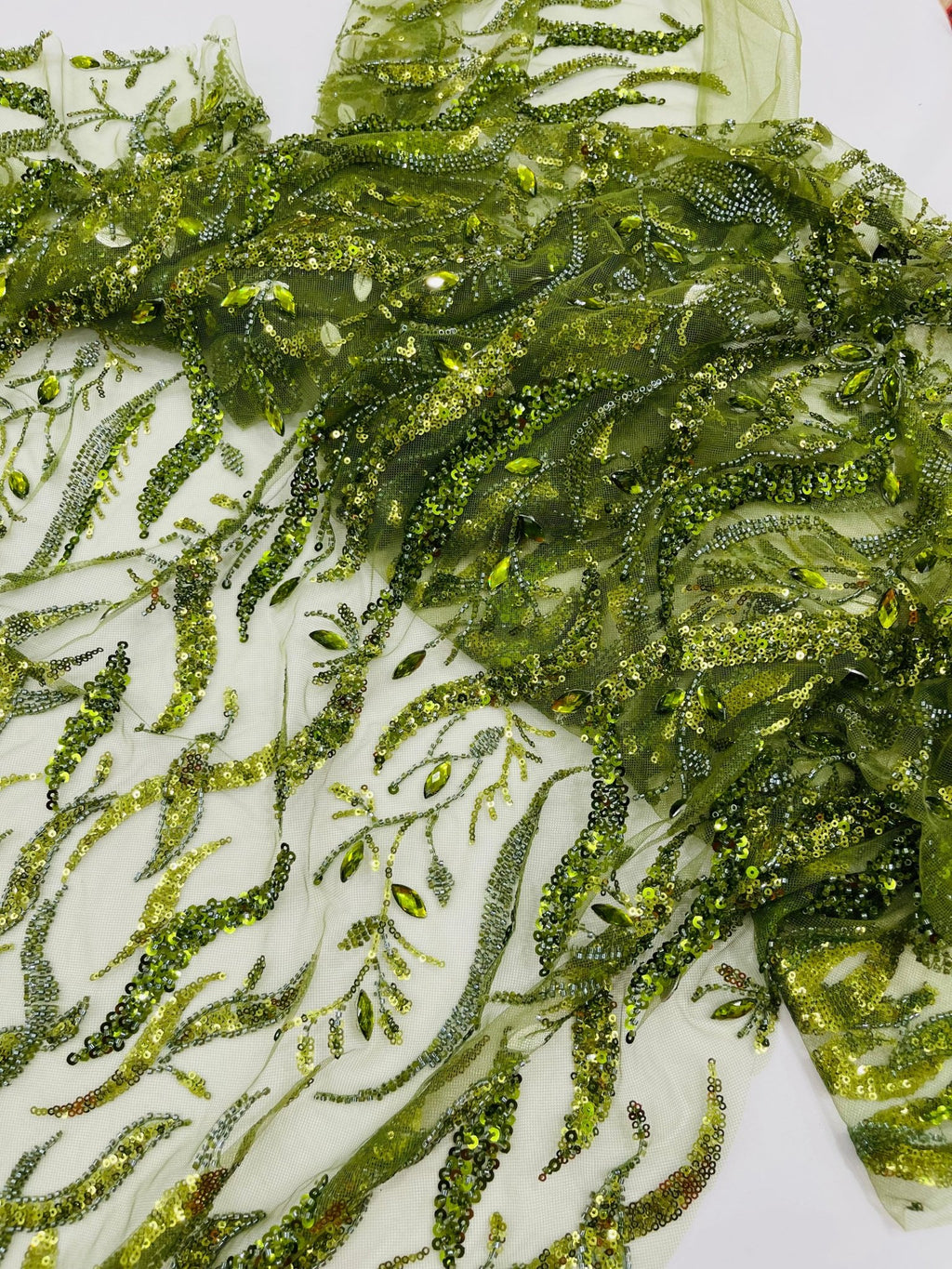 This beautiful vine lace it's hand beaded with sequins, and glass beads on a mesh mesh. The lace can be use for all different purposes such as, clothing, jackets, dresses, skirts, applications, table covers, runners, and much more.....