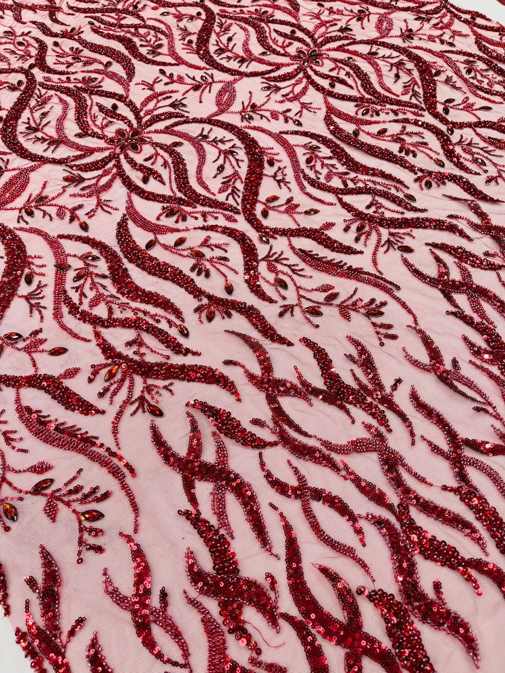 Jewel Vine Beaded Lace 54" Wide| New Creations Fabric & Foam Inc.