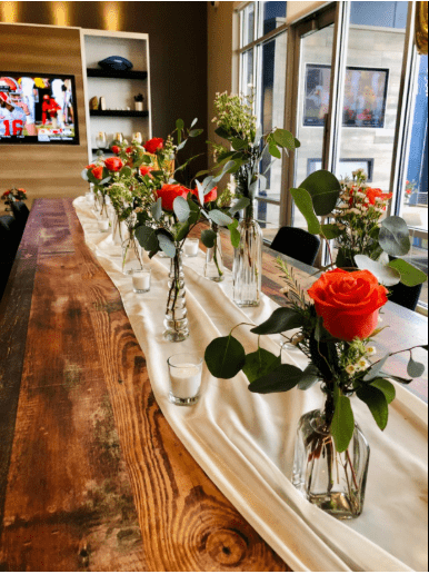 • Flowy silk chiffon table runner. Serged edge for a clean look.