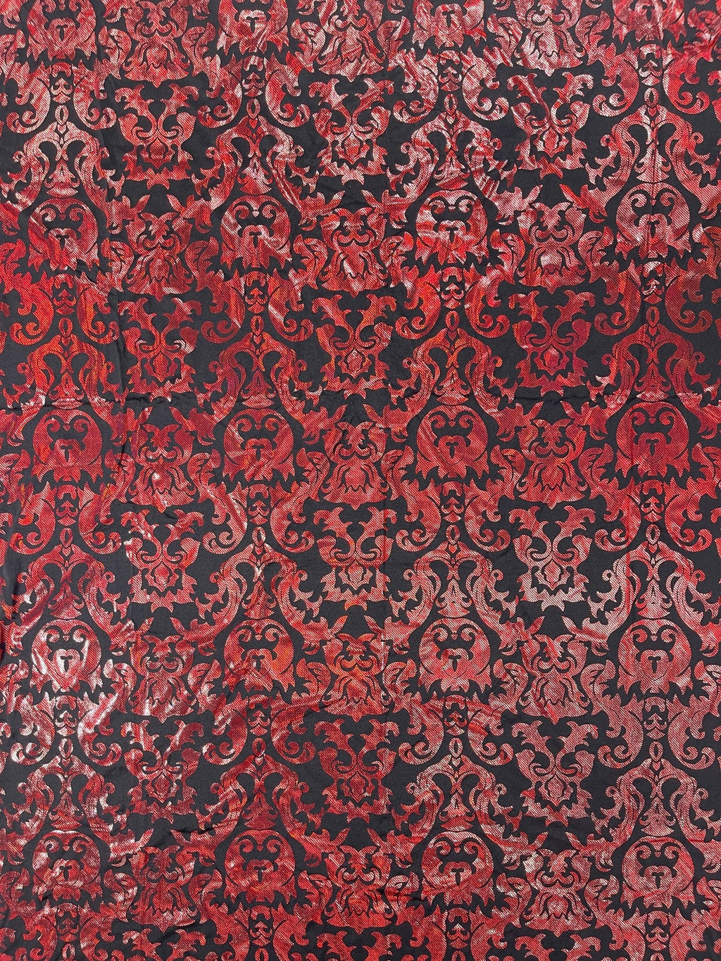 New metallic nylon spandex damask design 4way Stretch 58/60" Sold by the YD. Ships worldwide from Los Angeles California USA.