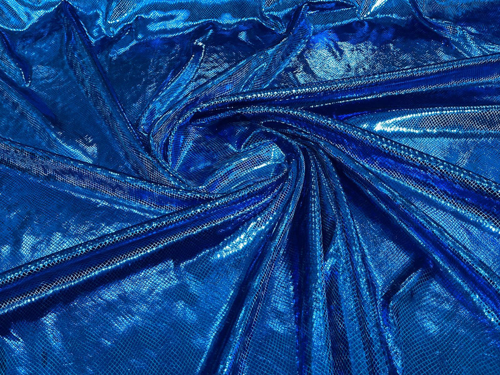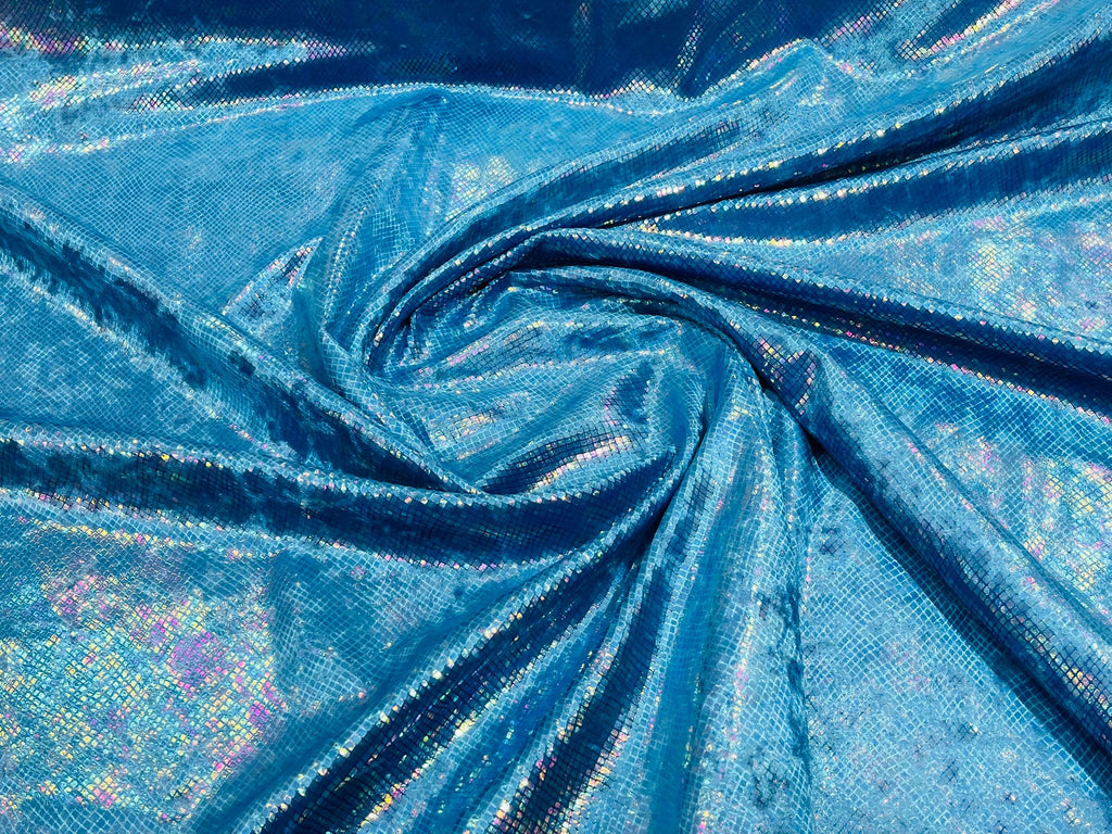 Our Venom Snakeskin Spandex Fabric has an iridescent lame snake print on stretch velvet fabric. Item has a 5 % stretch on the grain and has a 3% stretch vertical. If more than one yard is purchased, item will come in one piece. For instance, if you order one yard, you will receive a piece of 58” x 36”. If you order two yards, you will receive a piece of 58” x 72”, etc.