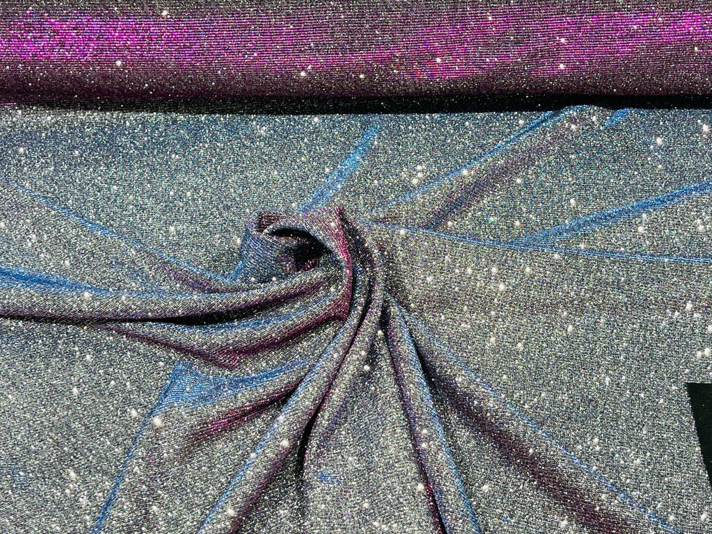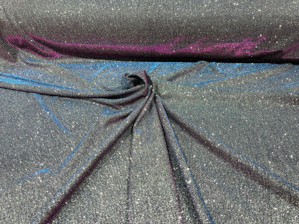 Has a vertical one way stretch and two tone effect with a beautiful stardust on the face of the fabric