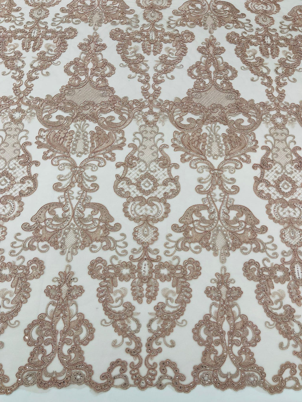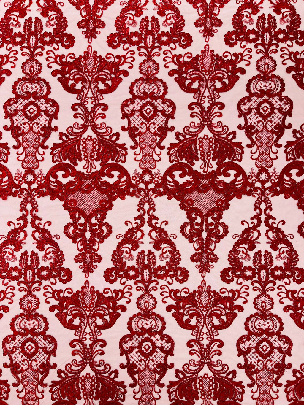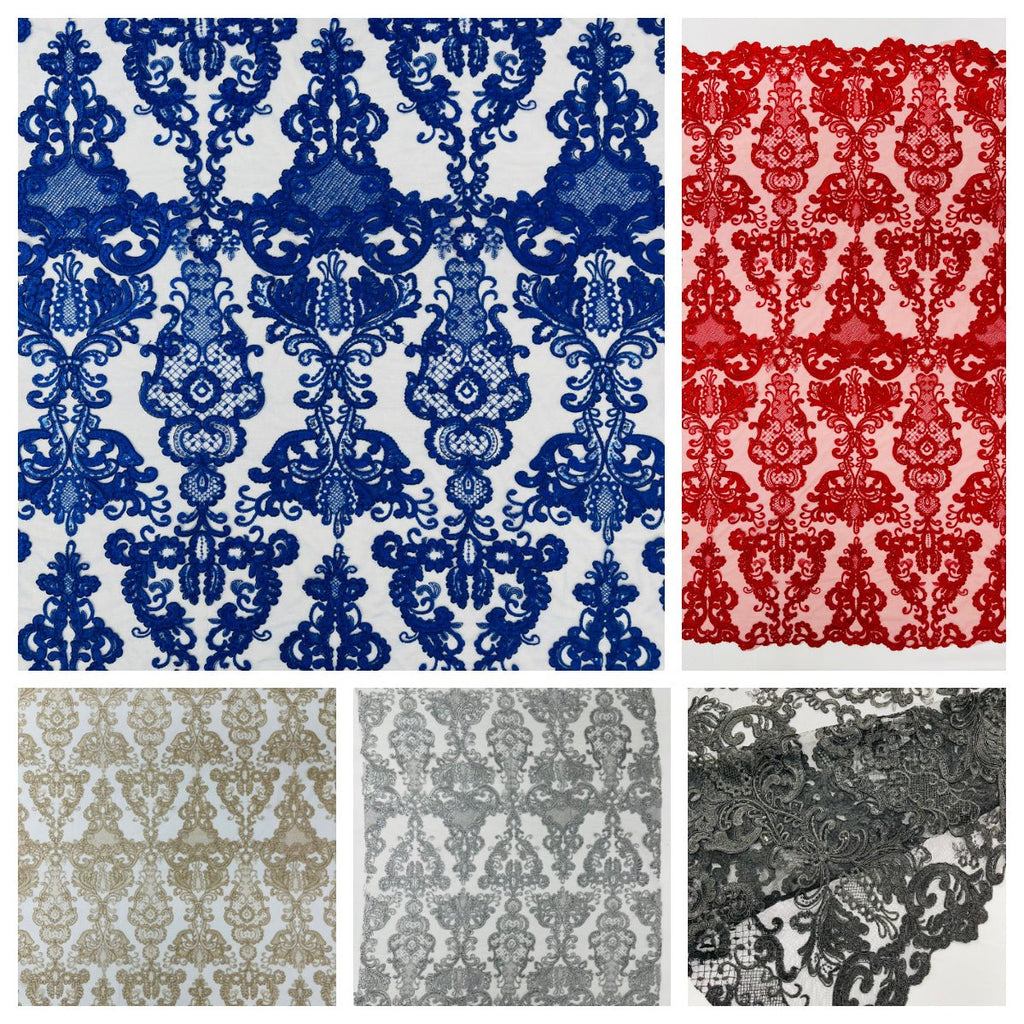Damask Embroidered Lace Fabric 54” Wide| New Creations Fabric & Foam Inc.