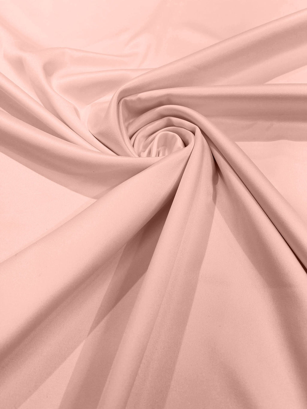 Matte satin (peau de soie) fabric is 60" inches wide, 100% polyester and has a medium weight of 6 oz per linear yard.