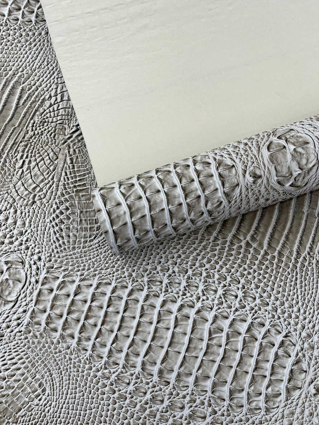 This Gator Ostrich 3D Embossed Vinyl feels like the real leather but it's made of PVC. This Crocodile Fabric is embossed and it looks exotic and it has a great texture.