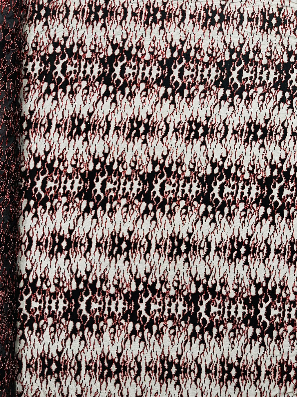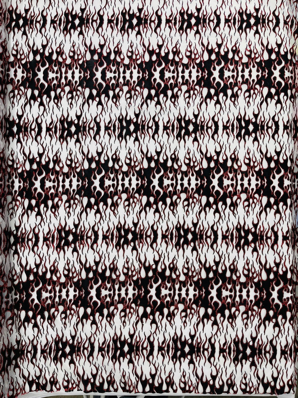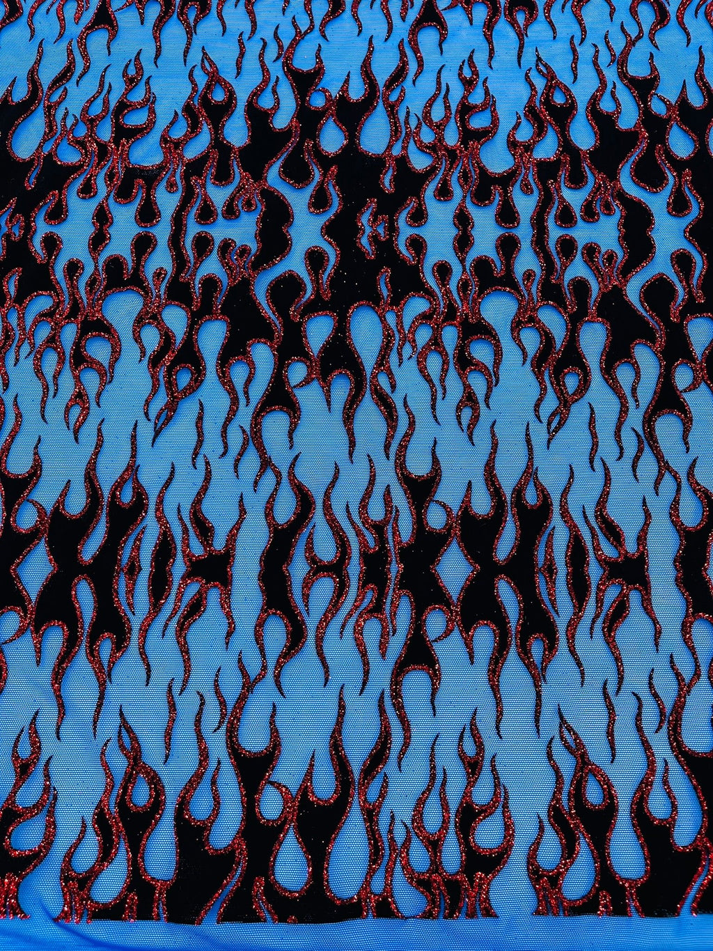 Transform your creative projects with this striking Power Mesh fabric featuring bold black flocking flames and eye-catching red glitter accents. At a generous 60 inches wide, this fabric offers ample material for automotive interiors, custom upholstery, or distinctive fashion pieces. The mesh base provides excellent breathability while the flocked flame pattern adds depth and texture. Perfect for hot rod enthusiasts looking to add that extra flair to their vehicle's interior, or designers seeking a unique material for statement pieces. The combination of black flames and sparkling red glitter creates a dynamic, head-turning effect that captures the essence of custom car culture. This versatile fabric can be used for seats, panels, accent pieces, or anywhere you want to make a bold statement. The durable construction ensures your creation maintains its striking appearance.