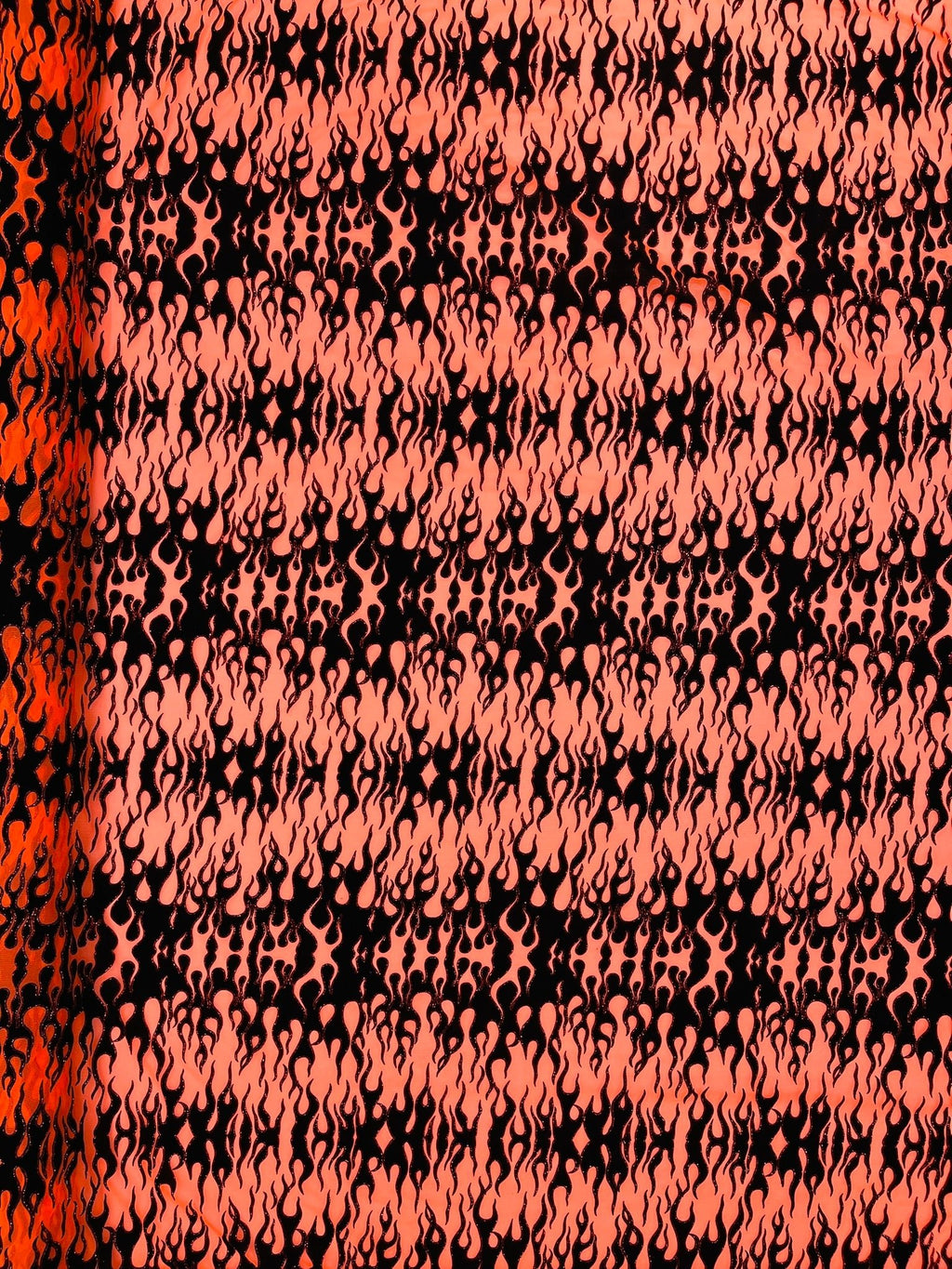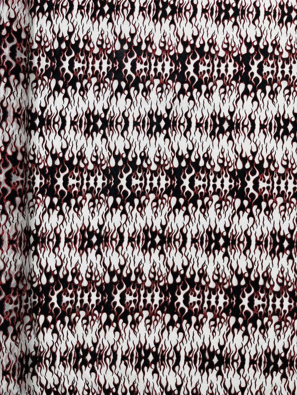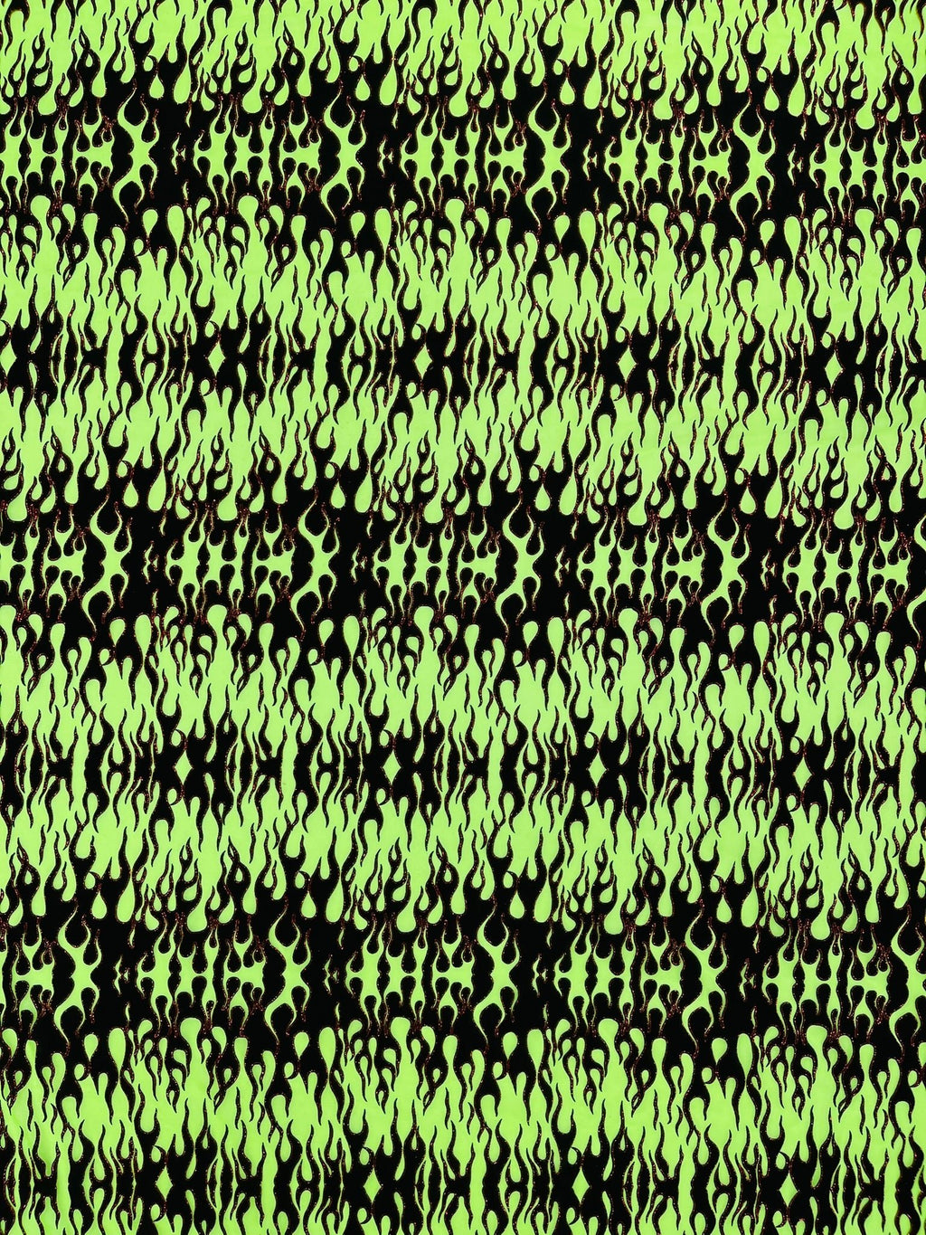 • DESIGN FEATURES: Power mesh base material enhanced with striking black flocked flame pattern and eye-catching red glitter accents