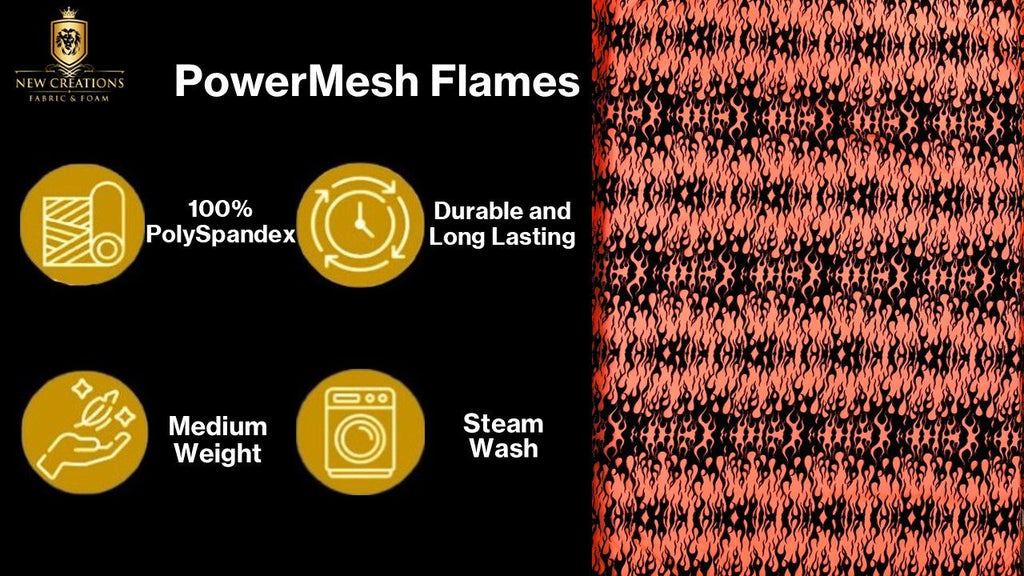 Flocking Flame Power Mesh Fabric 58" Wide| New Creations Fabric & Foam Inc.