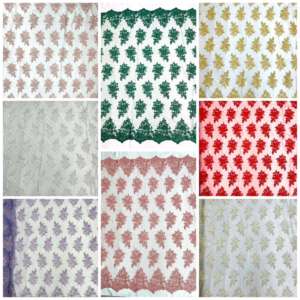 These corded flowers are embroider with sequins on a mesh lace fabric giving off a sophisticated and elegant look . The lace has a double scallops on the width .This lace can be used for dresses, tablecloths, nightgowns, prom gowns, bridal gowns, wedding gowns, runners, Vegas shows, pillows, decoration, and much more.
