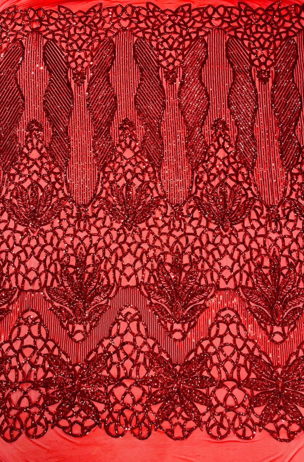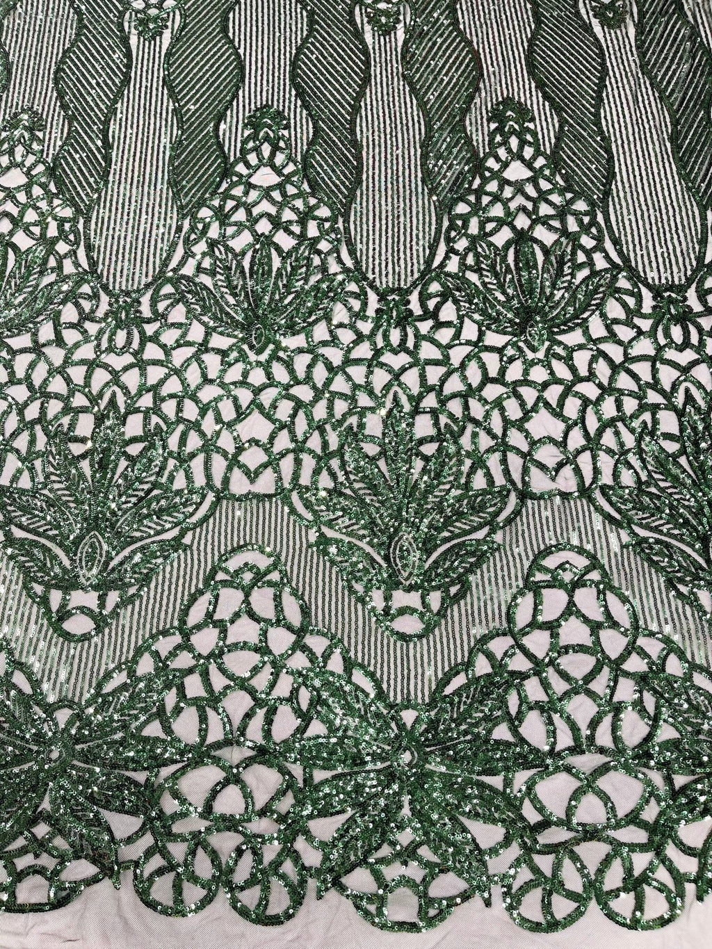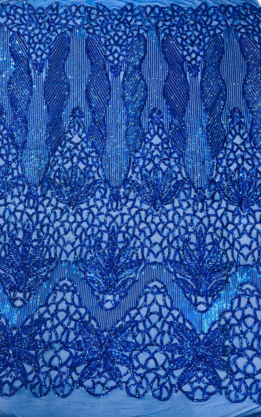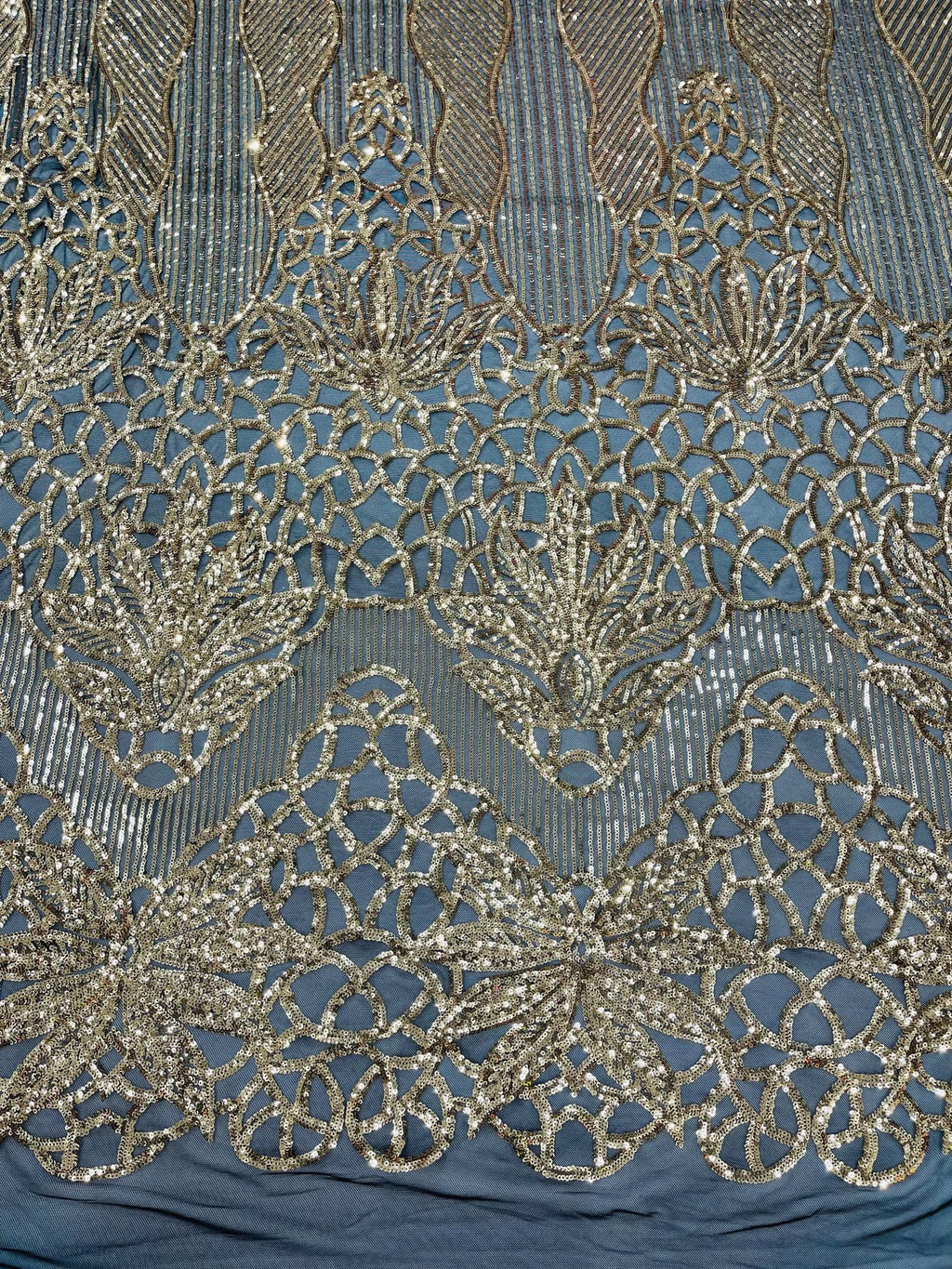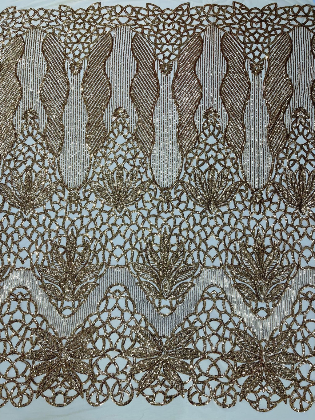 This Floral Damask design is embroidered with iridescent Sequins on a 4 Way Stretch mesh fabric. The iridescent Sequins has especial and extraordinary design on the Mesh . It is super elegant and classy, The royalty design embroider with iridescent Sequins on a mesh can be use for dresses, tablecloths, night gowns, Skirts, prom dresses, wedding dresses, runners for tables,decoration and much more.