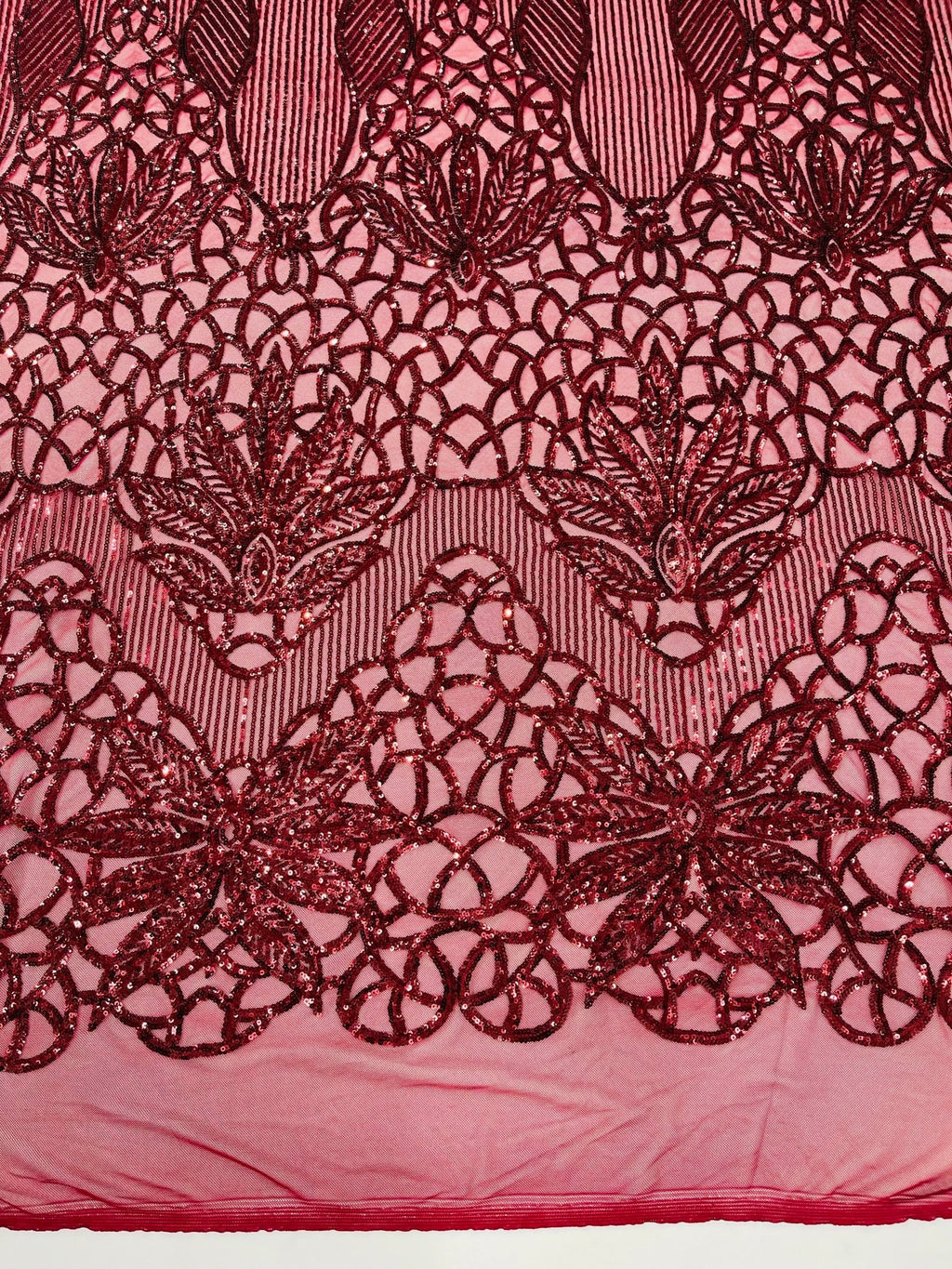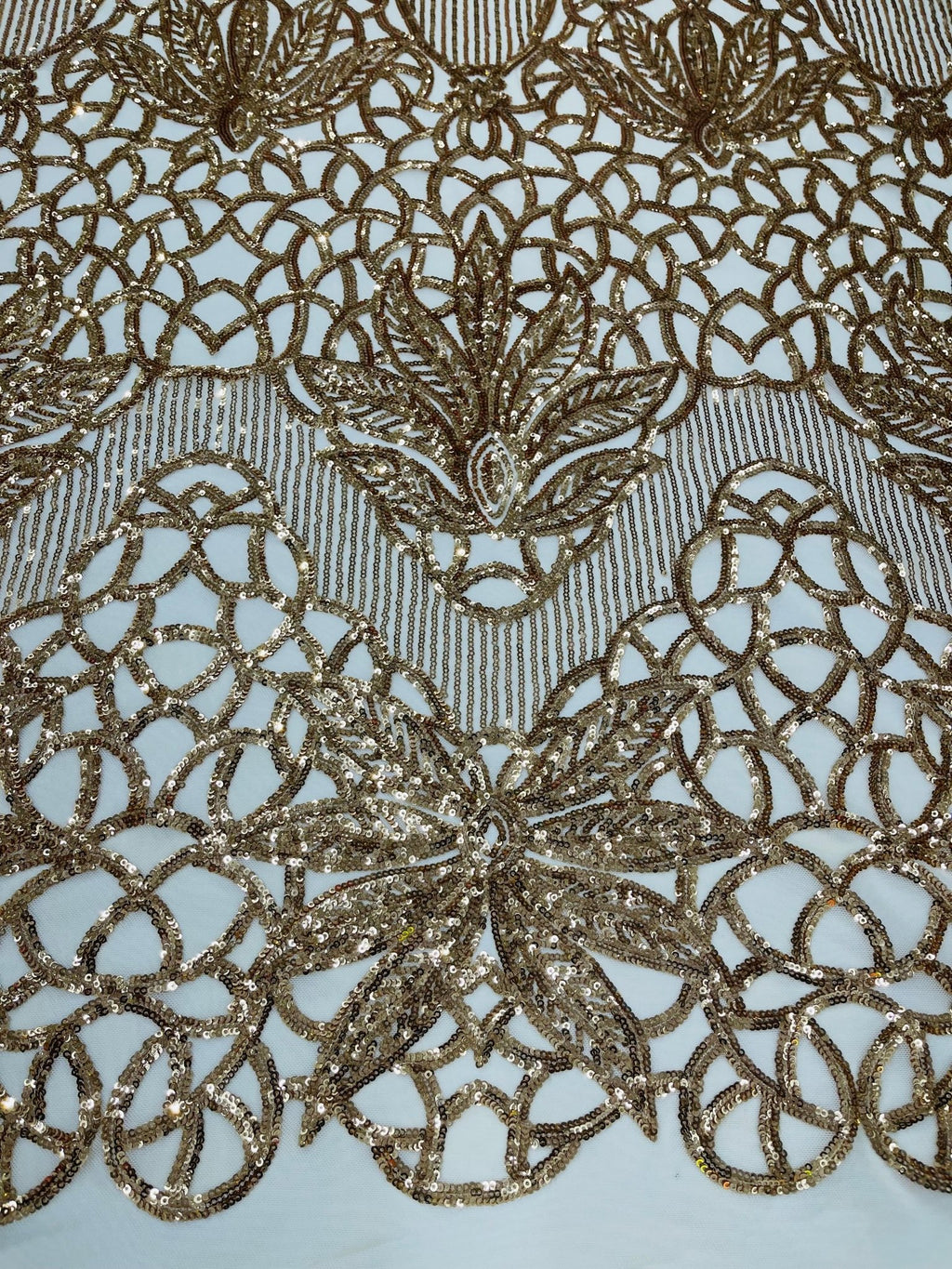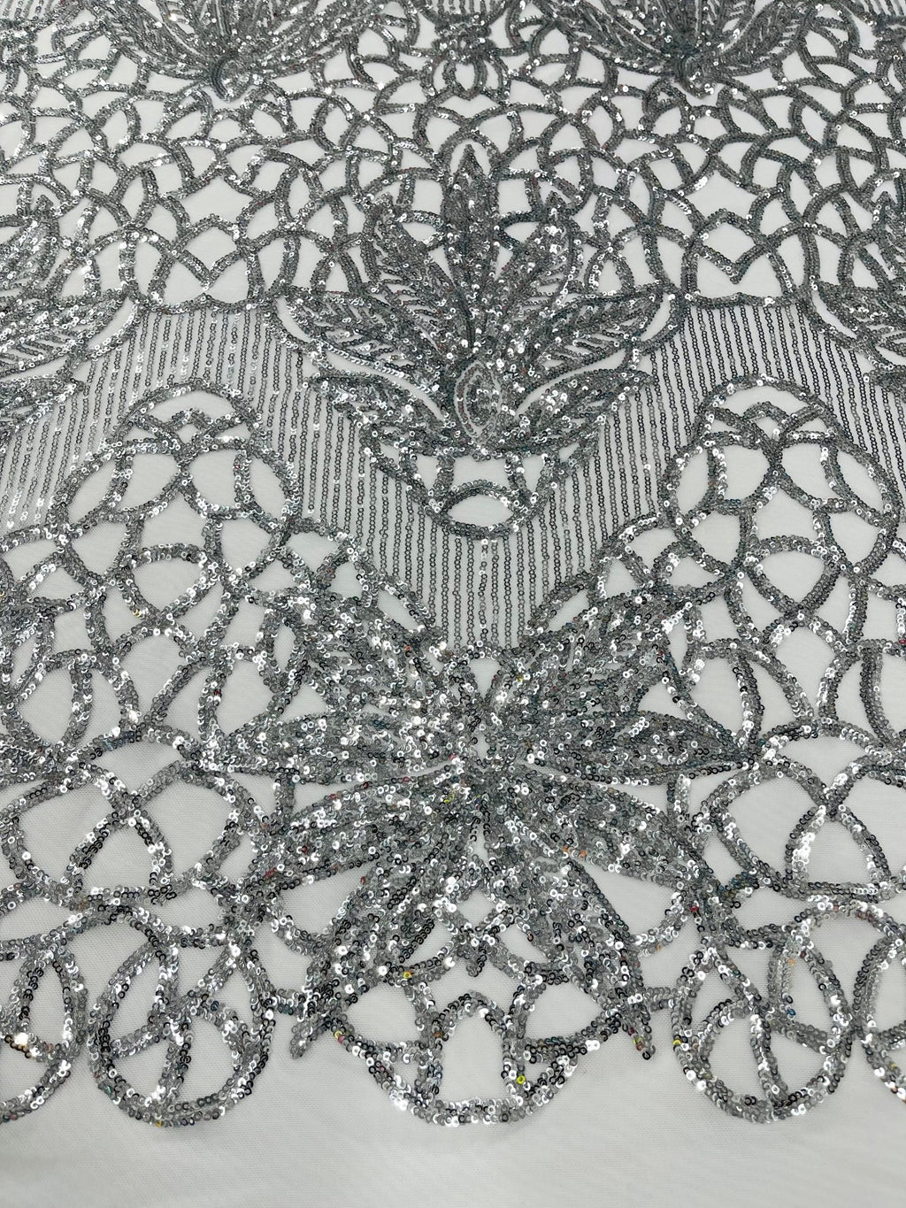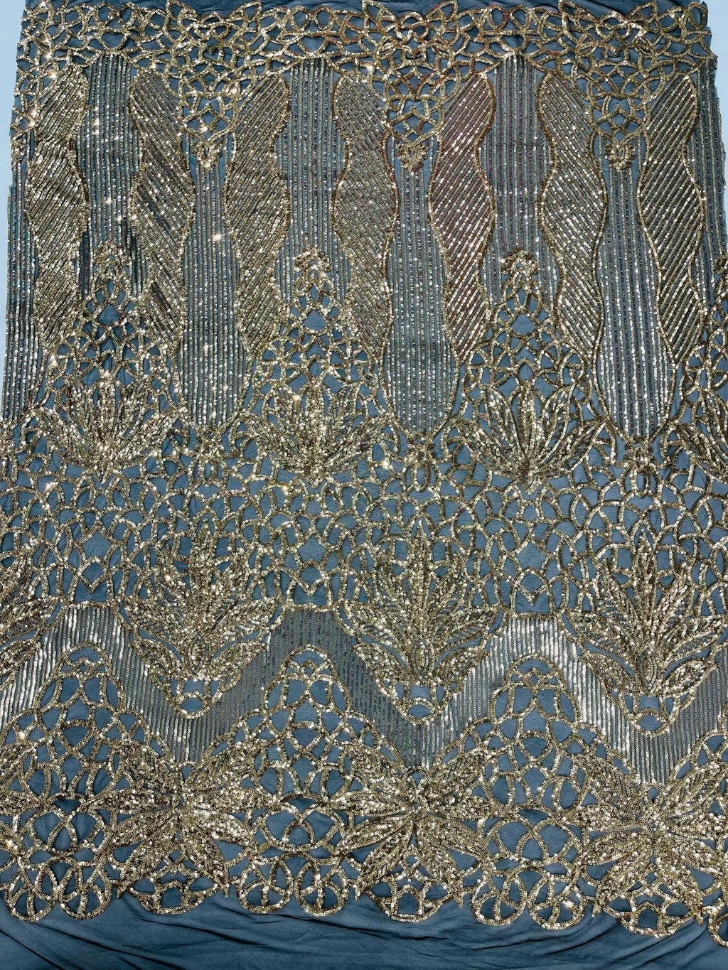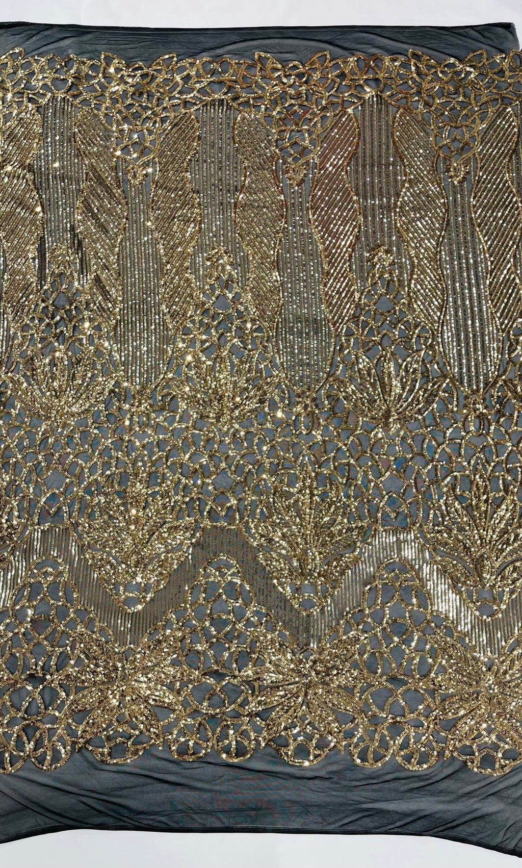 Feather Damask Sequin Design on a 4 Way Stretch mesh| New Creations Fabric & Foam Inc.