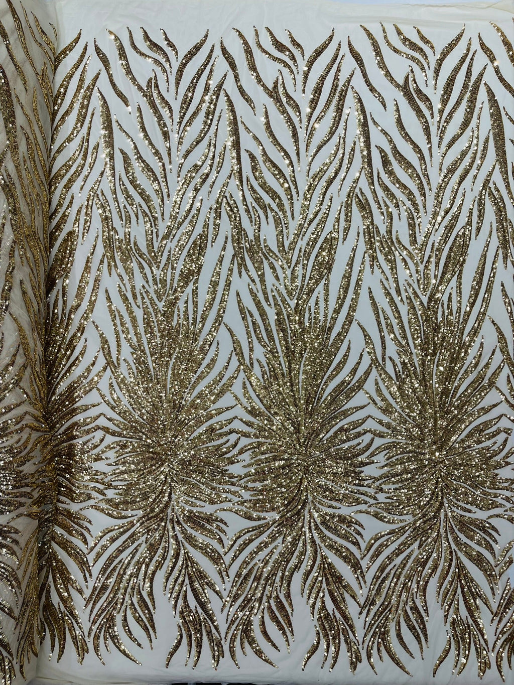 sequin flame design on a 4 way stretch mesh-sold by the yard.