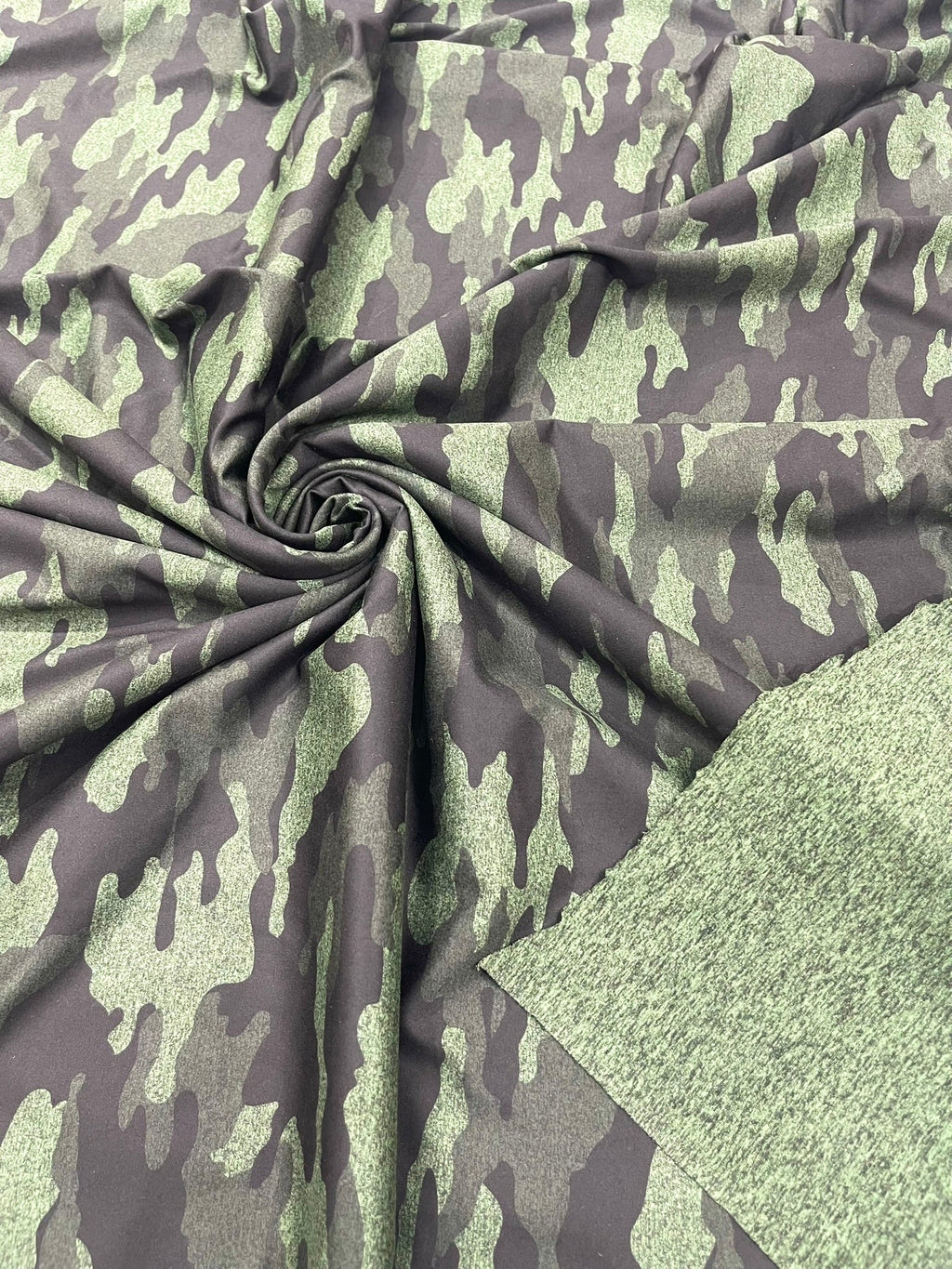 Our Heathered Camo Print Reversible Poly Spandex Fabric is a versatile and creative choice for your sewing and crafting projects. The 4-way stretch provides the flexibility and comfort necessary for a variety of projects, including lined swimwear, dancewear, activewear, tops, dresses, and more.